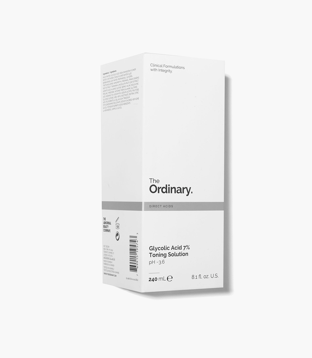 The Ordinary Glycolic 7% Toning Solution is free from silicone, alcohol and oil, and is also vegan and cruelty-free. It is not suitable for use on sensitive or compromised skin.